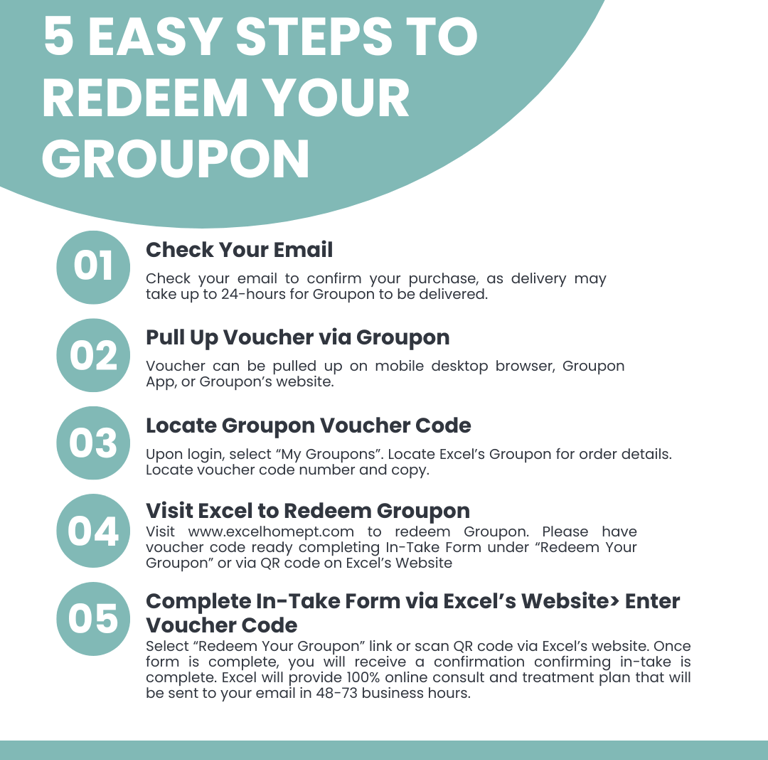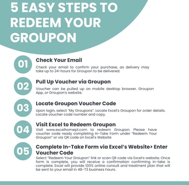 To help us serve you best, please complete your secure patient in-take form by using the QR code or clicking the button below titled “REDEEM MY GROUPON HERE” to get started!
